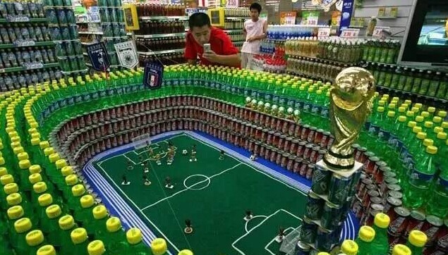 各地超市卖场为吸引顾客的眼球,将货物拼放成各式雷人造型,可乐“足球场”、牙膏“坦克”、纸巾“女装”、啤酒“变形金刚”、拖鞋“孔雀开屏”、厨具“圣斗士”……等等,各式商品经过工作人员的精心“打扮”,在博得顾客惊叹之余,也令商品获得一定的亲睐,一些搞笑造型更是让人忍俊不禁,瞬间惊呆购物的小伙伴们。