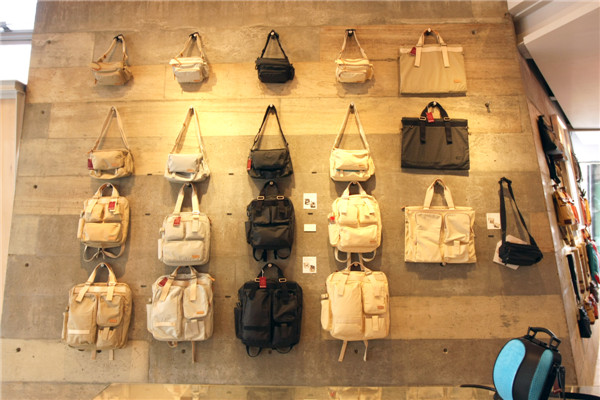 不同款式的包袋整齐地陈列在墙面上,一些代表性的款式可以在商店的各个区域进行重复陈列。
