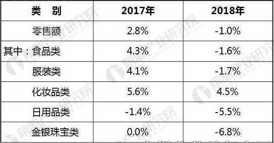 2017、2018年全国百家重点大型零售企业春节黄金周零售额增速情况