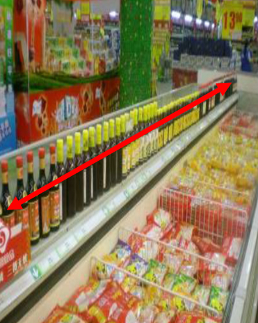 (2) 方式:端架两侧、地笼四周及架内排面等位置陈列有销售力、有季节性和有关联性的商品。