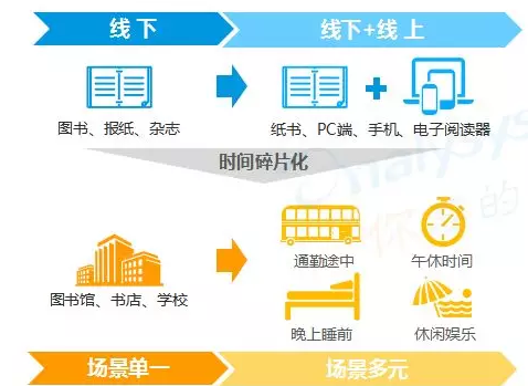 同时,伴随着互联网时代的到来,人类的阅读习惯由传统的纸质图书阅读逐步向数字化阅读拓展,线上线下多层次的阅读方式,使得阅读不再受空间和时间的限制,阅读场景逐渐由单一形式向多元化形式转变,阅读变得无处不在。