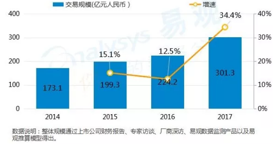 2014-2017年中国移动阅读市场交易规模