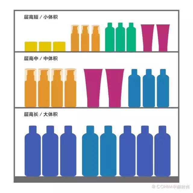 更重要是,小体积货需要近距离的观察,不可能把它放到最下面。大体积货因为目标够大,放差一点的位置,也不影响顾客看它。