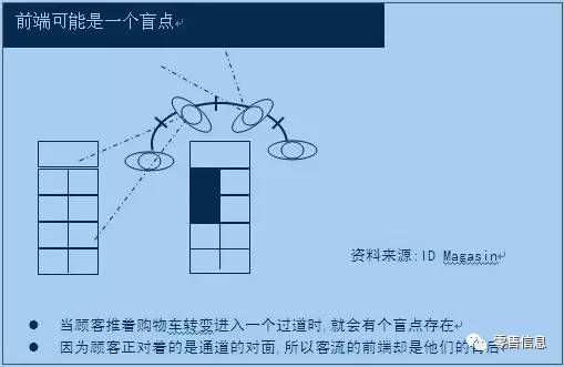 所以,一组货架真正最好的位置不是前端也不是后端(因为前后是相对的,前可变后,后也可变前),而是中间位置。