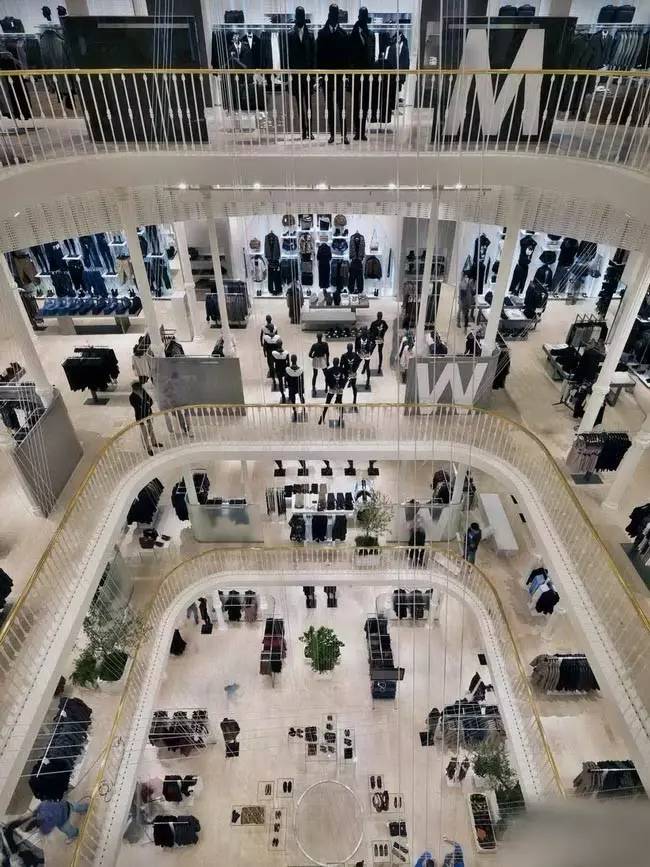 H&M的卖场有空间宽敞、动线明确、货品有序、色彩丰富、橱窗新颖等特点,其店铺属于百货仓储式陈列,店铺空间主要是用来存储。