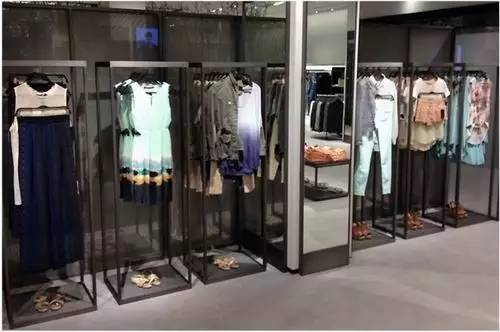 女装区域的陈列是ZARA品牌陈列的重点,透明的玻璃在店外可以看到里面的陈列款式,所以都采用的是双面正挂的方式,让消费者对里面货品的更新情况一目了然。