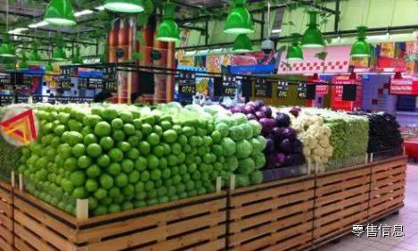 蔬菜,一般在大润发、永辉有这样的陈列,在新华都也见过,货量大,需要销售支撑,同时逐一摆放也需要陈列技巧。