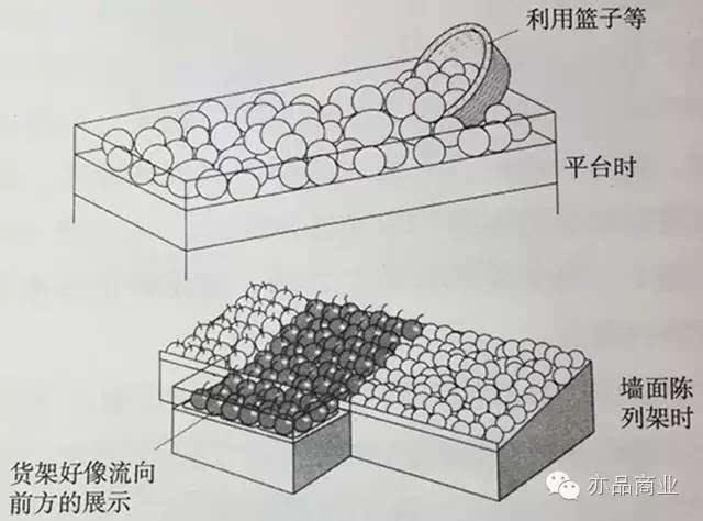 像瀑布/河流一样使商品呈“流动"感的陈列方式。(如图)