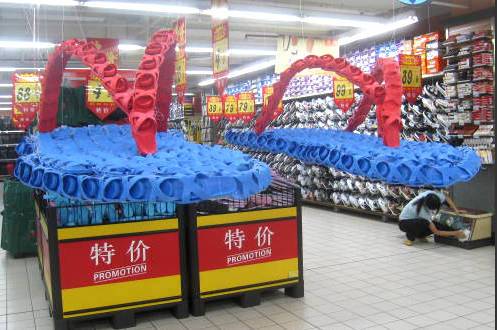 (2) 方式:利用地堆、端架单品丰满夸张陈列,可使用假岛