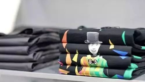 叠装的标价签和价格牌统一放置衣服内。叠装从上到下由小到大叠放,在板墙层板上陈列,数量统一要求为3件,较厚的特殊产品可2件。