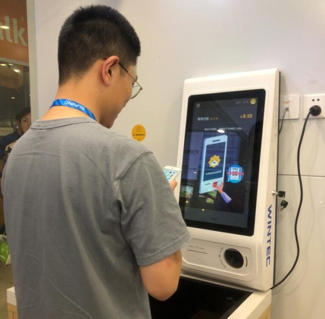 苏宁小店负责人解释道:“这块贴上去的条形码叫RFID码,与普通条形码最大的不同在于它内置了芯片,可以帮助顾客极速扫码。”