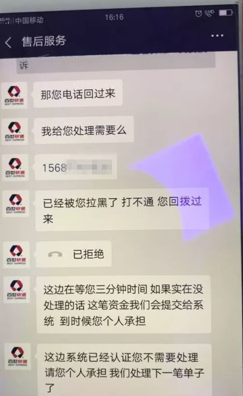 这是怎么回事呢?于是她打电话给店铺客服,客服告诉她,还是得打电话问百世快递。