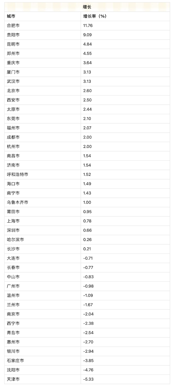 调查发现,2023年城市便利店门店数量实现正增长的城市占所调查城市总数的64.1%;门店数减少的城市占所调查城市总数的35.9%。大部分城市便利店的发展保持了稳定的发展。其中合肥市的便利店数量增长率达到了11.76%,是所有城市中增长最高的,其次是贵阳和昆明。