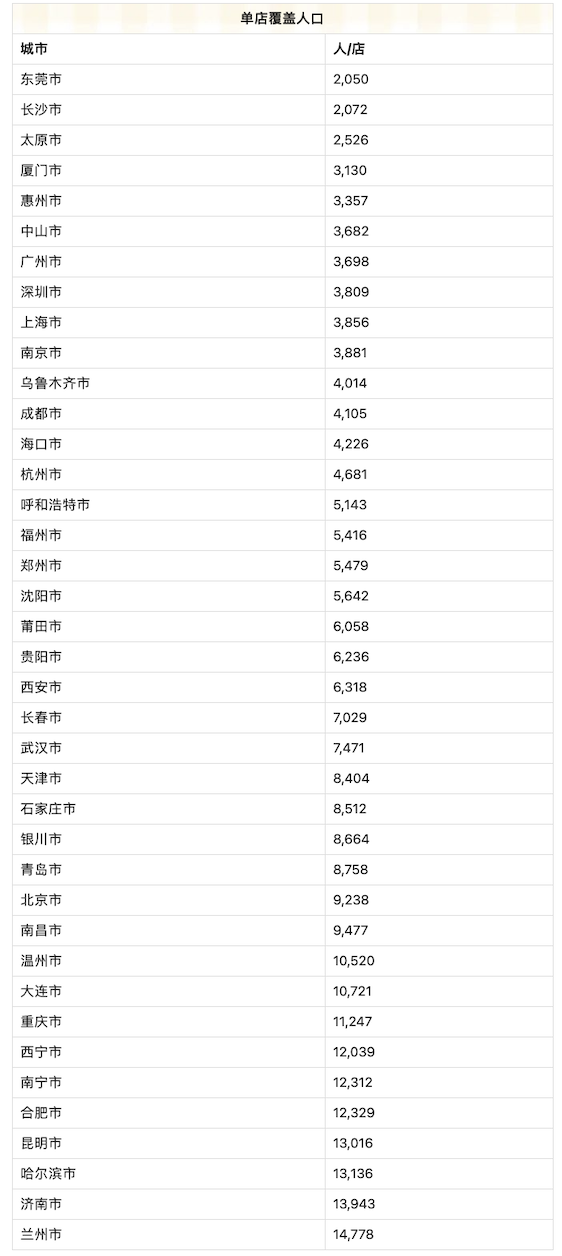 单店覆盖人口=该城市总人口数/该城市门店总量