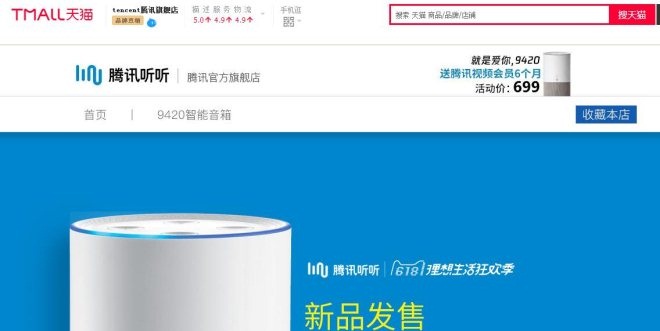 6月13日消息,有网友告诉《联商网》,一家名为“tencent腾讯旗舰店”的商铺在天猫悄然上线,目前仅上线了腾讯听听一款人工智能音箱产品。