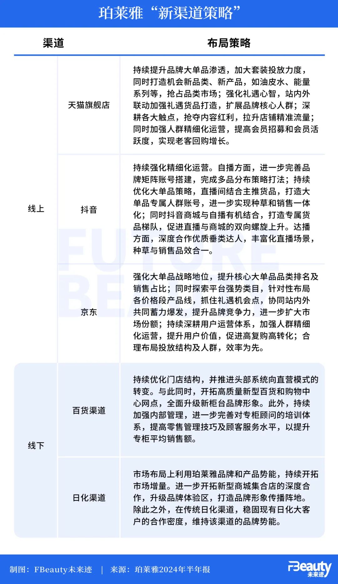 珀莱雅就在财报中列出了集团“新渠道策略”的详细布局,例如针对天猫旗舰店持续提升品牌大单品渗透,加大套装投放力度;针对抖音强化精细化运营,打造品牌自播矩阵、丰富化直播场景,实现种草与销售品效合一;针对京东强化大单品战略地位、持续深耕用户运营体系等。