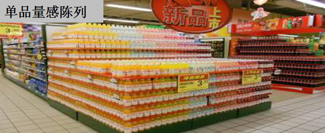 (2) 方式:利用地堆、端架单品丰满夸张陈列,可使用假岛。