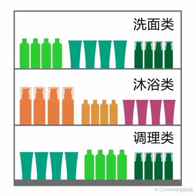 而中岛柜因为柜台自身的因素,会以品类陈列为主。不同品牌的同一品类聚集在一块,更方便顾客同类比较。要注意的是,并非同一品类一定要摆一排,以横向扎堆是主原则,但也可以穿插的以竖向扎堆为辅助,不要死板。