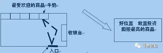 1)店内金三角——定位原则,它们在沿着三个要点的路径上:入口,收银台,店内被最频繁购买的商品周围。
