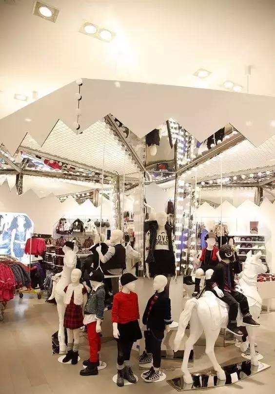 由于ZARA的品牌定位是向白领女性提供低价的欧美时尚女装,所以其橱窗也体现了时尚现代感。并且其童装的橱窗陈列也非常有特色。