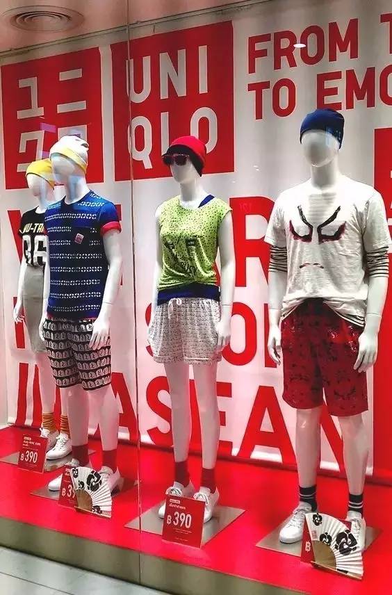 优衣库的橱窗展示主要运用“视觉提案”的原理。总结来说有以下三点特点: