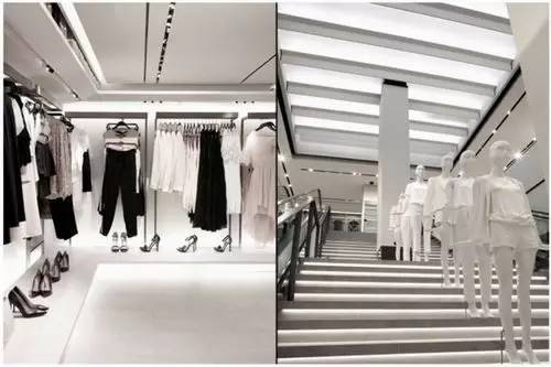 ZARA店铺的灯光大部分采用的是镶嵌灯和固定射灯,灯光需要交叉照射,体现出品牌的时尚格调。