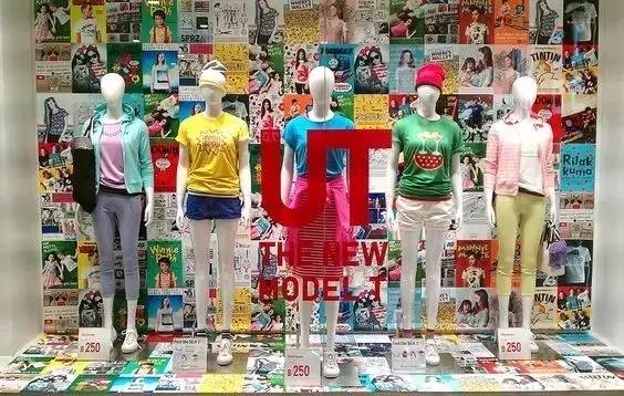 优衣库的橱窗主要为后背封闭式橱窗,即以橱窗作为店铺的外墙,虽然顾客无法通过橱窗看到店铺内部的情况,但这种设计恰巧利用橱窗的展示勾起他们对服装的好奇心,从而进入店铺进一步了解。
