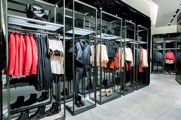 女装区域的陈列是ZARA品牌陈列的重点,透明的玻璃在店外可以看到里面的陈列款式,所以都采用的是双面正挂的方式,让消费者对里面货品的更新情况一目了然。