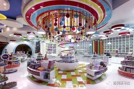 彩色的吊顶就像一个巨大的棒棒糖。