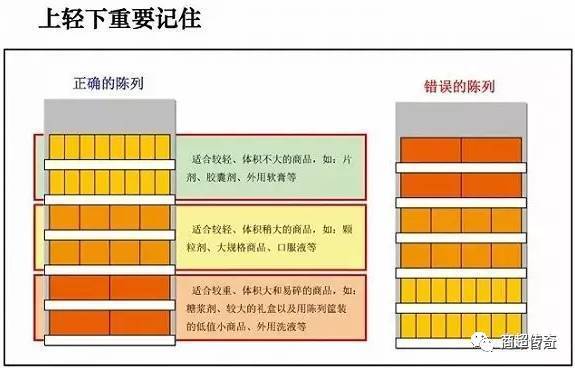 下层适合较重、体积大和易碎的商品,如糖浆剂、较大的礼盒以及用陈列筐装的低值小商品、外用洗液等。如下图所示: