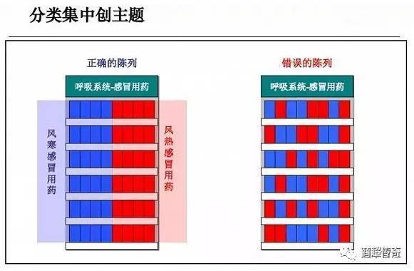 主题陈列是扩大陈列效果、增强顾客关注的较好办法。基本陈列可以依据零售药店自身商品分类的情况进行主题划分,特殊陈列还可以增加更多感性的主题内容来提升陈列的效果。如图所示: