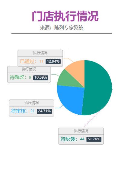 通过自动记录用户动作数据,进行多维度的分析,门店的及时反馈率、得分率,执行比例等等,从而考察门店的执行力是否到位?从得分率来考察门店的工作态度是否符合公司要求。