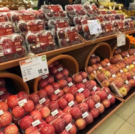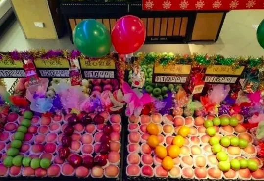将商品的最优面朝向顾客,以苹果为例,把最红的一面面向顾客或鲜切水果的切割面面向顾客。