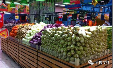 蔬菜,一般在大润发、永辉有这样的陈列,在新华都也见过,货量大,需要销售支撑,同时逐一摆放也需要陈列技巧。