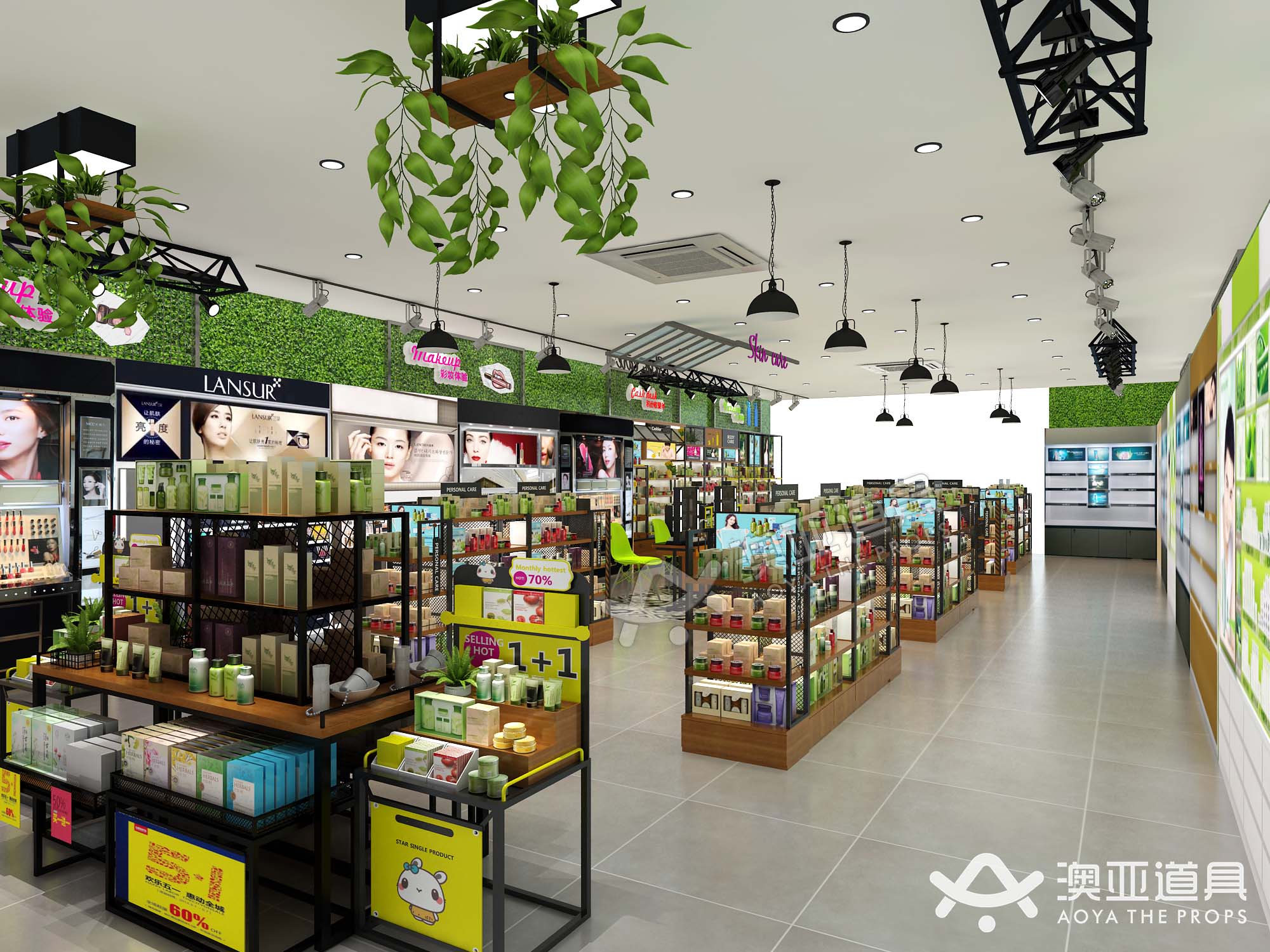 (化妆品店铺设计,化妆品陈列)