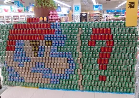 有些在日常生活中经常遇到的小件商品在陈列时一般不会引起人们的注意,用一些夸张的表现手法——异形陈列,可以增强这些商品陈列时的视觉效果。