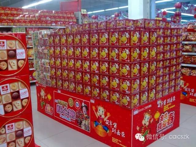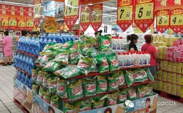 3.落地式陈列的堆头,在非销售区的陈列应是该堆头上所陈列的商品,并且做到颜色统一方向统一,里面可用其他商品或者纸箱做假底。
