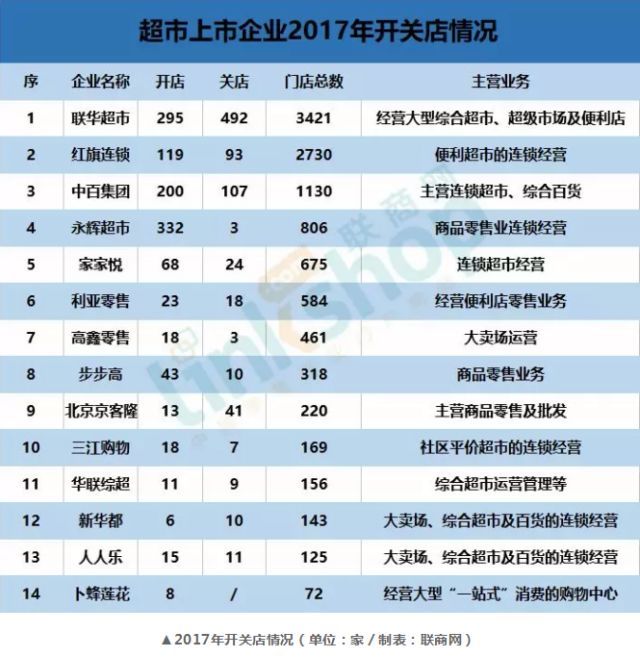 联华超市新开295家,关店492家