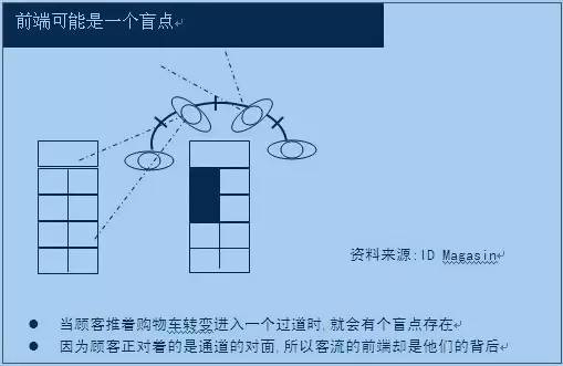 所以,一组货架真正最好的位置不是前端也不是后端(因为前后是相对的,前可变后,后也可变前),而是中间位置。