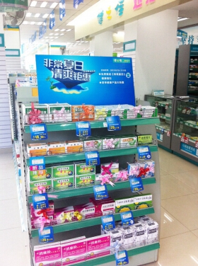 “排头”药品扎上彩花,这种布置精细到位,更贴合了该药品的使用属性,让有此需求的顾客不由得产生亲昵感,放松紧迫感。
