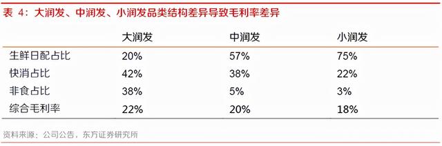 与此同时,小型店“小润发”主打“品类齐全,价格亲民”的商品,以200到500平米的面积,精选约1,000支SKU。数据显示,其生鲜、日配类产品的销售额占比达到75%,坪效达到1.26万元,超过大润发的0.91万元和大润发Super的1.15万元。