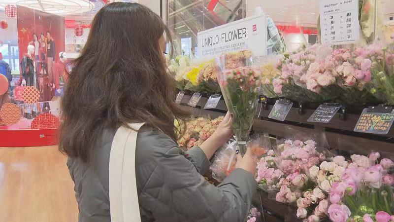 今天上午,记者在优衣库淮海中路全球旗舰店看到,一楼中庭十分显眼的位置已经被打造为一片精美的花市。花市中有雏菊、向日葵、满天星、玫瑰等种类多样的鲜花,还贴心地在每种花的下方都附上了小卡片,上面说明了鲜花的花语以及养护方法。29元/束、58/2束、79元/3束,亲民的价格也是让不少市民驻足挑选。市民费小姐乘着这个周末原本是来为自己选购新年的新衣服,进店瞬间就被满眼的鲜花吸引,决定选两束漂亮的品种装扮一下家里。