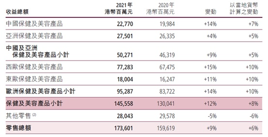 3月17日,屈臣氏母公司长江和记商业有限公司发布了2021年全年业绩。2021年屈臣氏中国市场销售额为227.7亿港元(约合人民币185亿元),同比上涨14%。