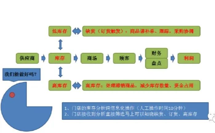 系统管理思想是将超市后台供应链看作一个整体,采购、订货、仓储、配送、信息处理、门店订货、门店验收等作业环节是整个供应链中相互影响相互作用的因素,优化它们的相互关系和运行规则,达到供应链的高效运行。