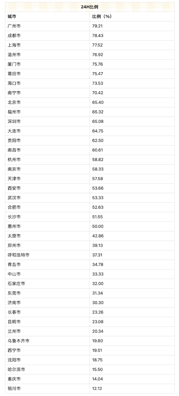 24H指数:按照调查计算出的占比从高到低排序,降序赋值100-50;