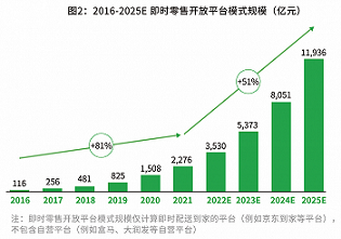 这样的预测,与艾瑞观点基本吻合。后者更为乐观地预计,中国即时零售开放平台规模将在2025年迈过万亿大关。