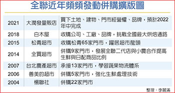 台湾全联近年频频发动并购扩张版图 (尤其是2021年开始启动并购台湾大润发, 并于2022年中完成并购案, 在市场最负盛名)