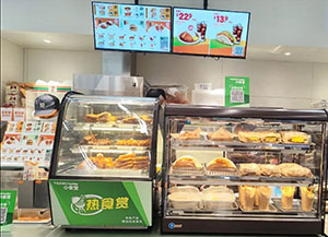 店内大致分为3大区域,进门右侧是餐食制作售卖区,包括原有的鲜食产品和新增的小食堂产品。