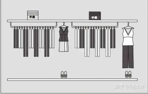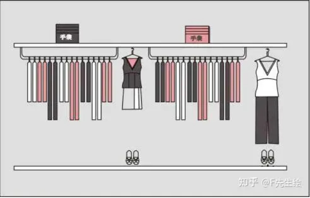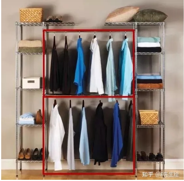 注:这个办法只是适用于数量较少的衣服,当不成系列的服装过多时,还需要4个技巧和3个原则相互配合使用,才能达到完美的效果。