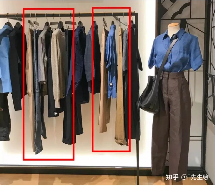 ▲使用互补颜色,让2种类型的衣服在视觉上都更加突出。